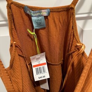 Stylish rust orange top with button-down front. Features a flattering V-neckline. Perfect for casual outings.