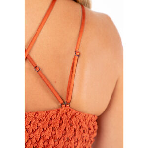 Crisscross racerback designed for support. Wear as an undergarment or a crop top to up your look. Not padded.
