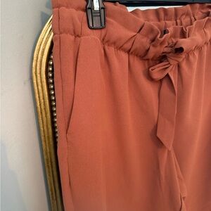 Stylish rust orange pants with a comfortable drawstring waist. Perfect for work wear!