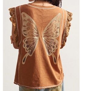 Rust Orange Lace Ruffle Cap Sleeve Top