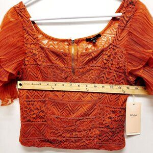 Rust Orange Lace & Sheer Ruffle Sleeve Crop Top By Blåshe Size M