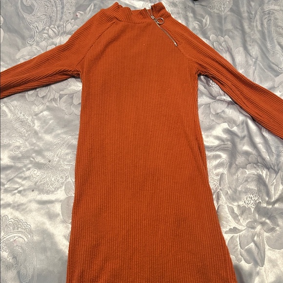 Rust Orange Ribbed Dress
