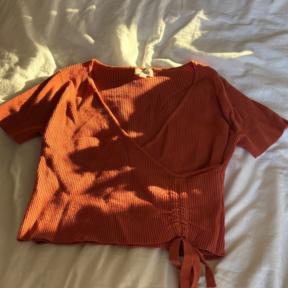 Rust Orange Ribbed Wrap Top