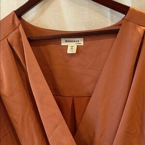 EUC! Chic, satin, rust orange blouse with ruffle sleeves. Perfect for any occasion. Can be dressed up or down. Just in time for all your fabulous parties! SNATCH IT UP WITH THE MATCHING SKIRT!