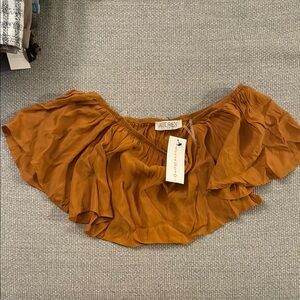 Stylish rust orange crop top with ruffled design. Perfect for casual outings.