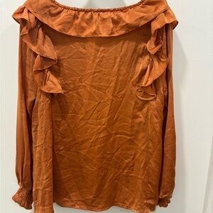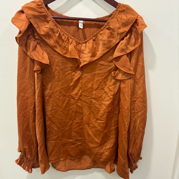 Elegant rust orange women's top with stylish ruffles. Perfect for any occasion.