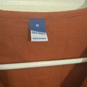 Flowy boho dress in a rich rust orange color. Features a relaxed fit and puff sleeves.