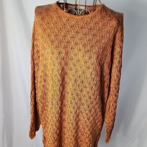 Rust Orange Cotton Rayon Open Knit Crochet Sweater Size S