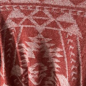 Stay cozy and stylish with this rust-colored patterned sweater. Perfect for layering in cooler weather.