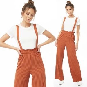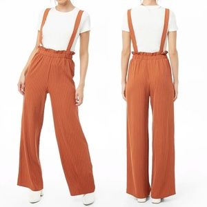 Rust Pinstriped Suspender Wide Leg Paperbag Pants
