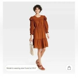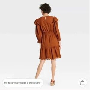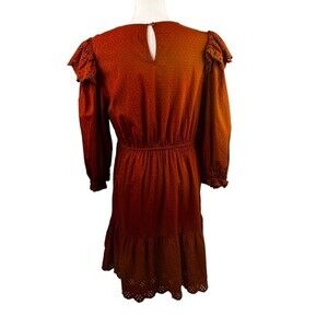 Rust Prairie Eyelet Ruffled Dress Universal Threads Large Pockets Cotton Blend