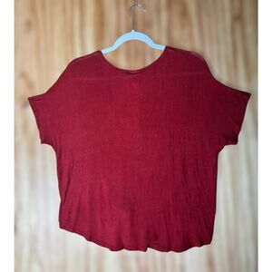 Rust Red Button Front Tie Hem Top Sz L Boho Casual Soft Knit V-Neck Slouchy Tee