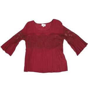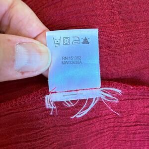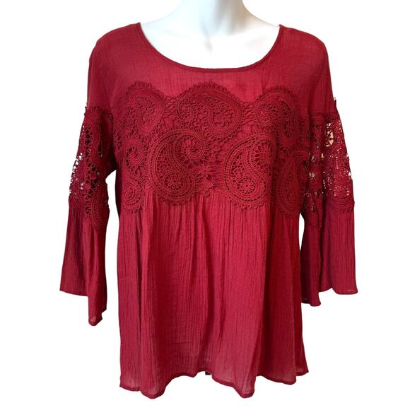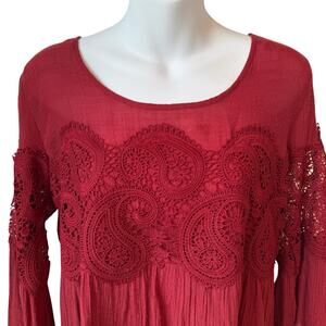Rust Red Emroidered Womens Boho Blouse Small Gauze Lace Bell Sleeve Fairy Grunge