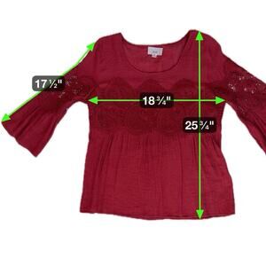 - Embroidered, 3/4 Bell sleeves: 17.5"