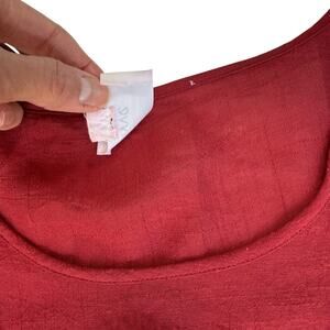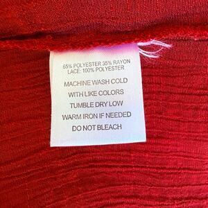 - Round Neck / Rust red, gauzy fabric with lace trim on front