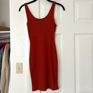 Rust Red Ribbed Bodycon Mini Dress