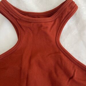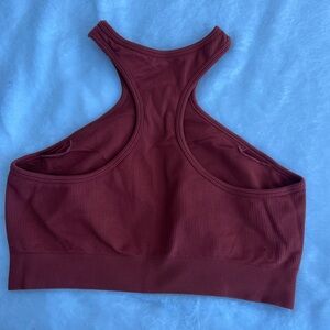 Stylish rust red ribbed sport bra. Perfect for the gym.