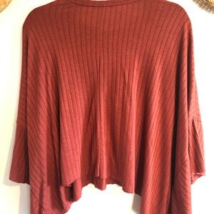 Elegant burnt orange knit top. Soft texture with ribbed detail. Winged sides also is ribbed!