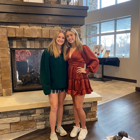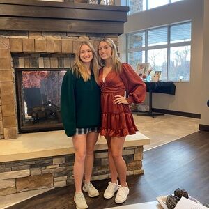 Beautiful Fall rust red dress with ruffle details. Perfect for any occasion!! Only worn once!