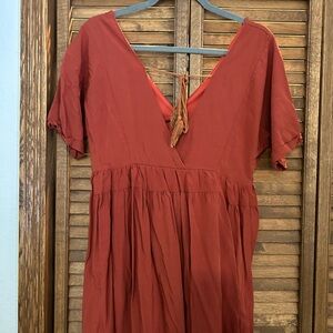 Rust Red V-Neck Dress