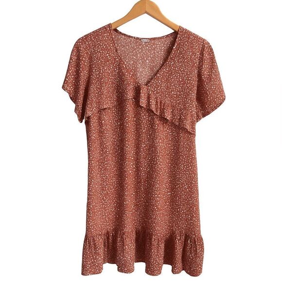 Rust Red Printed Ruffle Mini Dress - Size M