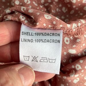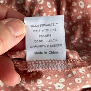 Adorable rust red mini dress with ivory micro print, v-neckline, flutter sleeves, and ruffled hem. Lightweight and unlined. Soft drape with a flattering relaxed fit.