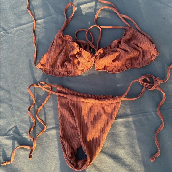 Dive into style with this rust ribbed bikini set. Perfect for a chic beach look.