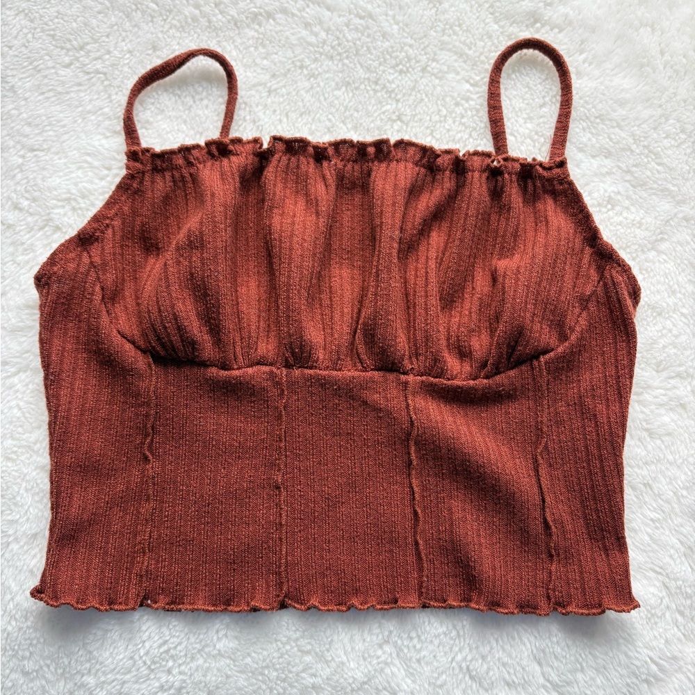 Stylish rust ribbed camisole. Flattering detailing. Straps were shortened but this can be undone.