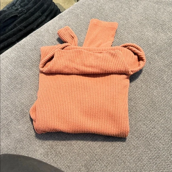 Cozy ribbed knit sweater in a warm rust color. Perfect for layering.