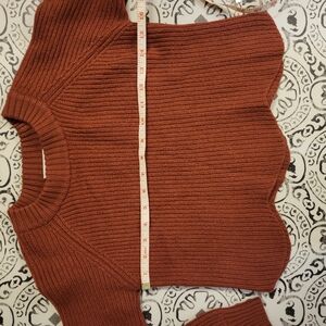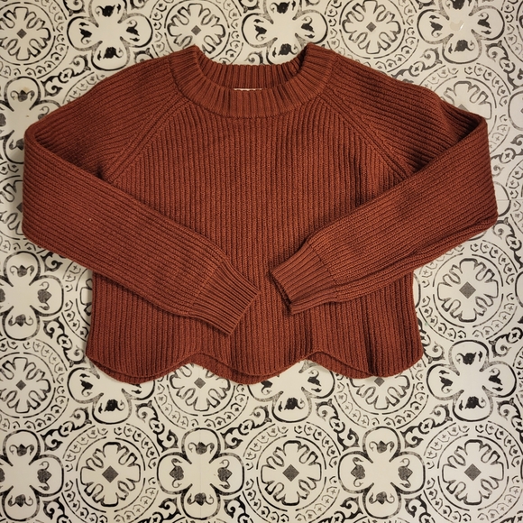 Reposhed as unfortunately it doesn't fit me. This Wilfred by Aritzia sweater is a beautiful rust color, made of 100% merino wool, and has a lovely scalloped hem. Cropped length, perfect for layering with dresses or skirts.