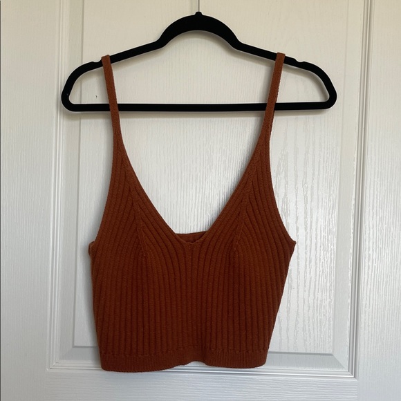 Elevate your style with this chic rust ribbed knit tank top. Perfect for layering or wearing alone, it offers both comfort and elegance.