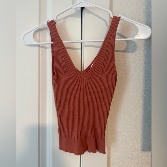 Stylish rust ribbed knit tank top. Perfect for layering or wearing alone.