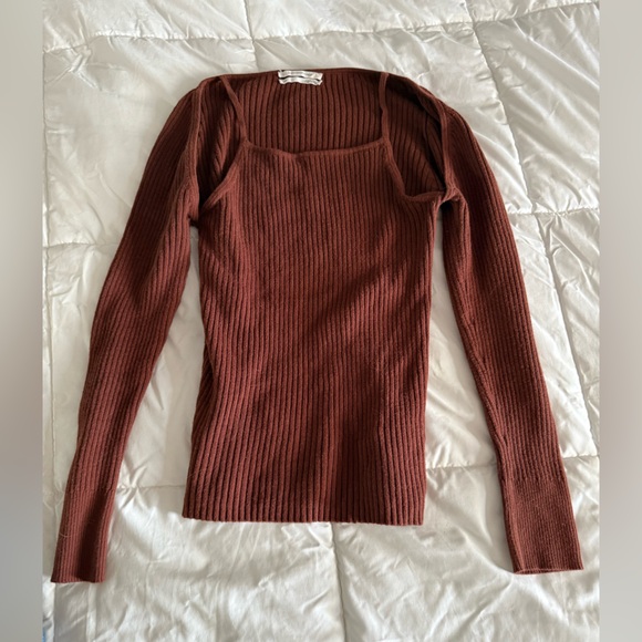 Stylish rust ribbed long sleeve top. Perfect for any occasion.