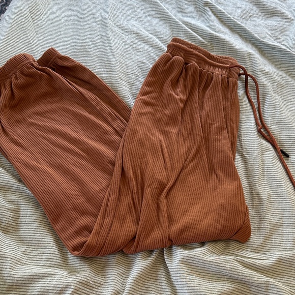 Comfortable rust-colored ribbed lounge pants. Perfect for casual wear. Perfect for the beach. Worn maybe 3 times maximum.