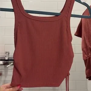 Elevate your wardrobe with this stylish rust ribbed tank top. Perfect for casual outings or layering.