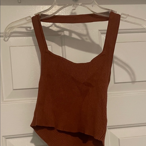 Elevate your wardrobe with this stylish rust ribbed tank top. Perfect for layering or wearing on its own, this top offers both comfort and style.