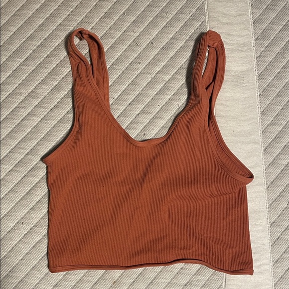 Elevate your style with this chic rust ribbed tank top. Perfect for any casual outing.