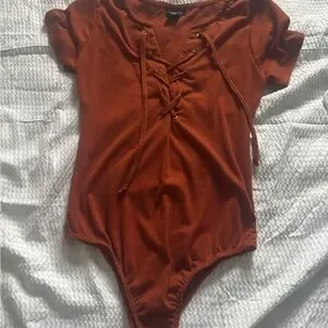 Stylish rust orange women’s one piece with lace-up front. Perfect for any occasion. Medium but fits like small- never been worn.