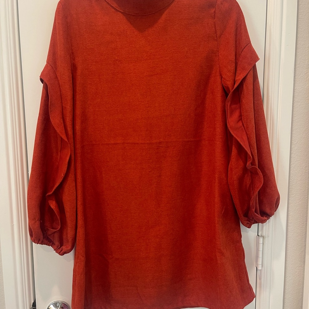 NWT high neck “rust” colored dress. Long sleeve, working button neck closure.