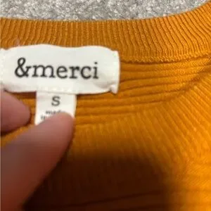 Gorgeous rich rust-colored ribbed sweater with dramatic ruffle shoulder detailing and soft balloon sleeves. Feminine, flattering