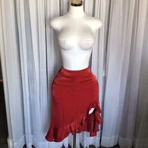 This stunning red skirt features a chic ruffle design, perfect for adding a touch of elegance to any outfit. Ideal for both casual and formal occasions.