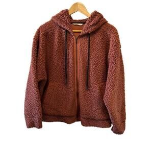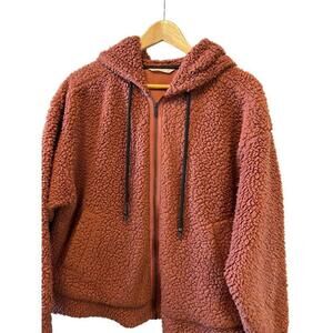 Rust Sherpa Zip Up Heavy Hooded Long Sleeve Hoodie Sweatshirt XL