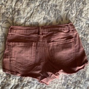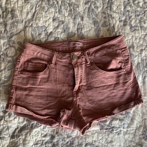 These shorts have a slight raw hem and are folded up on the sides. They are made of a thinner material which makes them cool in the summer.
