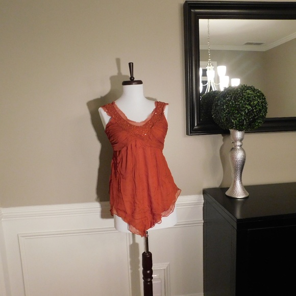 Rust Silk Beaded Tank Top - S - BRAND NEW