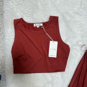 Elevate your style with the Rust Skirt Set. This elegant ensemble features a flowing skirt in a rich rust color, perfect for any occasion.