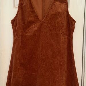 Chic rust-colored sleeveless dress with a deep V-neckline. Perfect for casual outings or a night out.