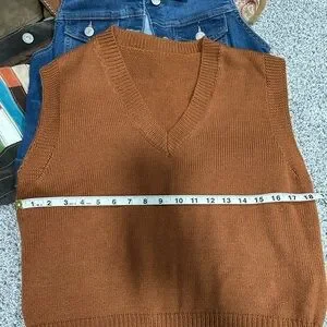 Stylish V-neck sweater vest by SHEIN. Soft and comfortable. Ideal for layering with a denim shirt and pairing with a wild rag.
