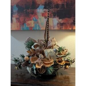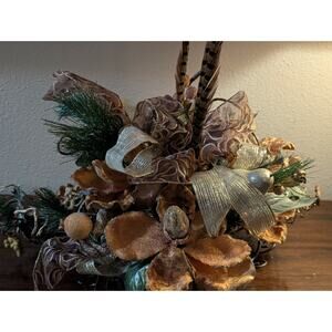 Rust Tan Gold Floral Autumn Fall Thanksgiving Centerpiece Pheasant Feathers