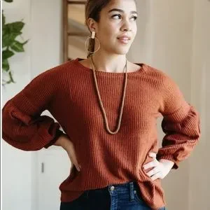 Rust long sleeve textured top.