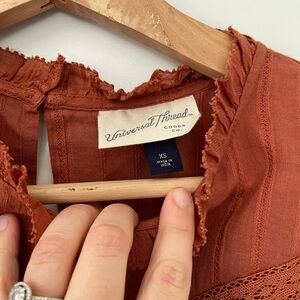 Perfect condition rust top with lace detailing. Button closure on back of neck